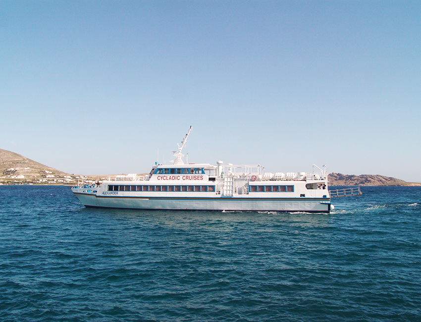 Κάθε καλοκαίρι το Alexander αναχωρεί από τη Νάξο ή την Πάρο και μεταφέρει τους επιβάτες του με ταχύτητες έως και 25 κόμβους προς τη Δήλο, τη Μύκονο, την Ηρακλειά, το Κουφονήσι και τη Σαντορίνη.